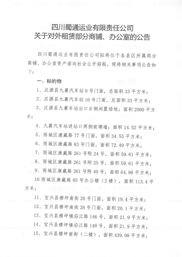 ËÄ´¨Êñͨß\(y¨´n)˜I(y¨¨)ÓÐÏÞØŸ(z¨¦)Èι«Ë¾êP(gu¨¡n)ÓÚŒ¦(du¨¬)Íâ×âÙU²¿·ÖéT(m¨¦n)Ãæ¡¢Þk¹«ÊÒÙY®a(ch¨£n)µÄ¹«¸æ¸½¼þ