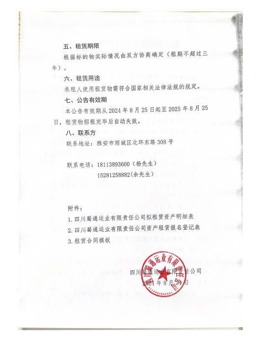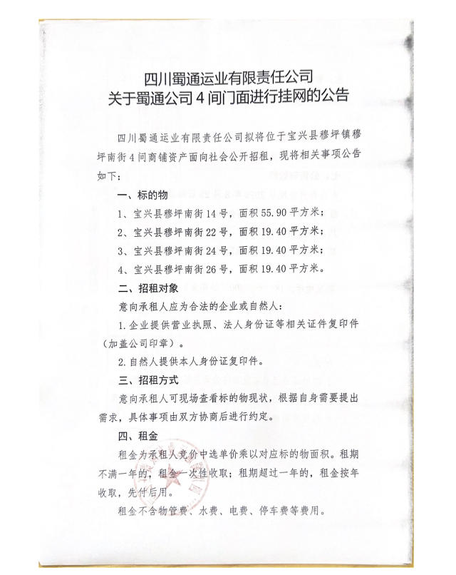 四川蜀通運業(yè)有限責任公司關于蜀通公司4間門面進行掛網(wǎng)的公告附件