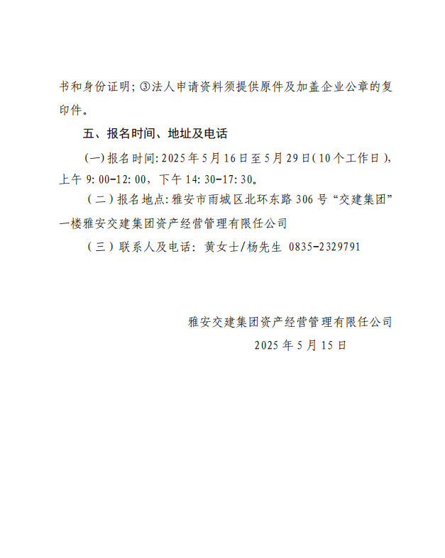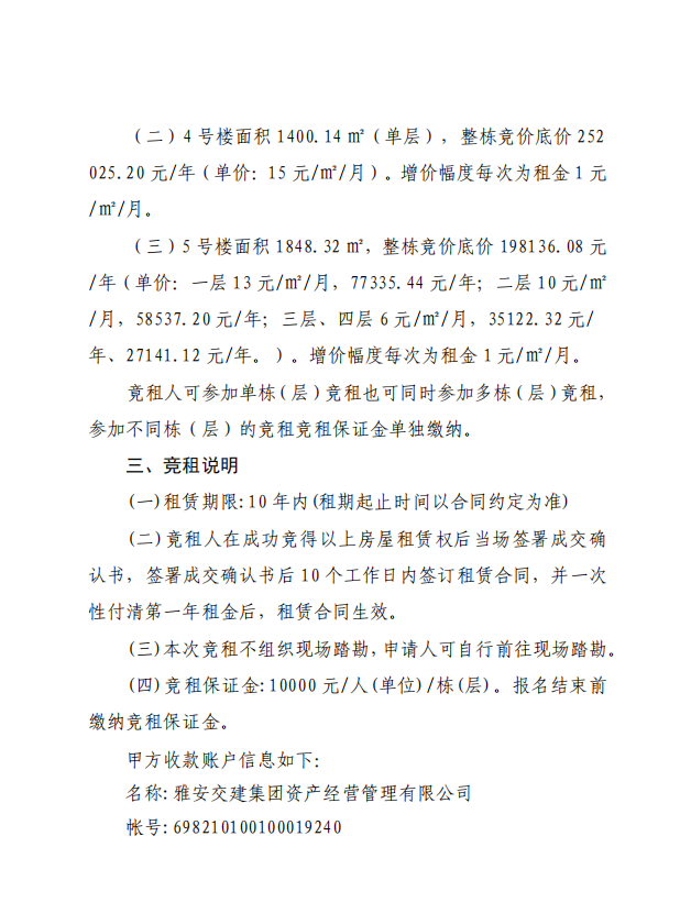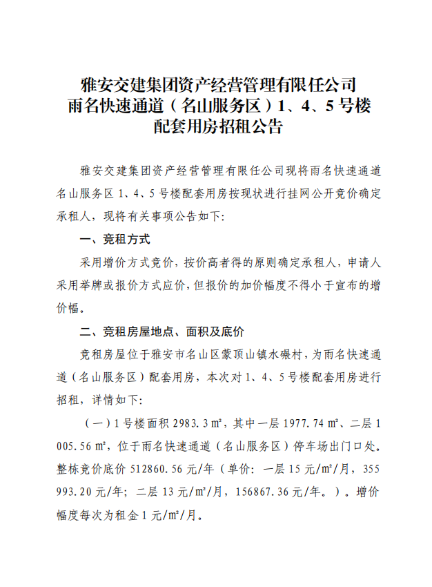 雅安交建集團資產(chǎn)經(jīng)營管理有限任公司 雨名快速通道(名山服務(wù)區(qū))1、4、5號樓 配套用房招租公告
