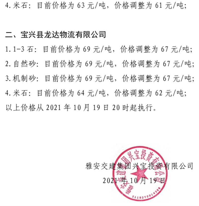 ÑŰ²½»½¨¼¯ˆFÔÆÊ¯¹«Ë¾êP(gu¨¡n)ÓÚÕ{(di¨¤o)Õû³ÉÆ·ÁÏäNÊÛƒr¸ñµÄ֪ͨ£¨2021.11.4£©