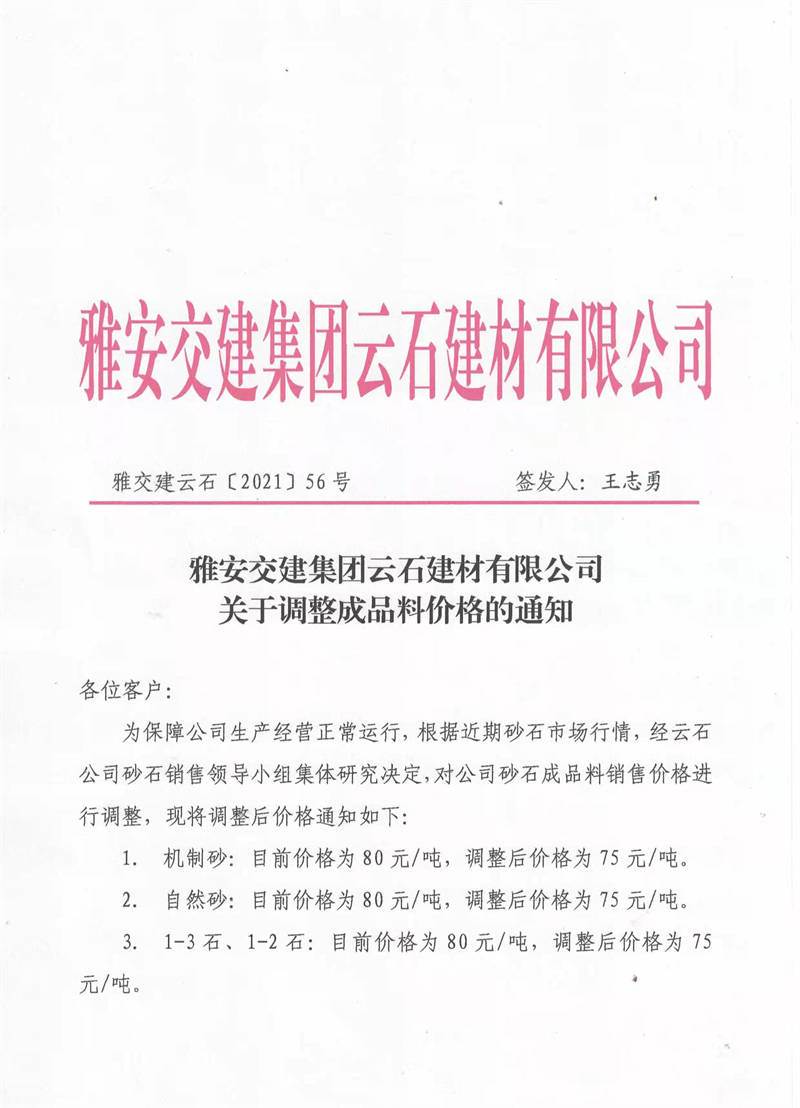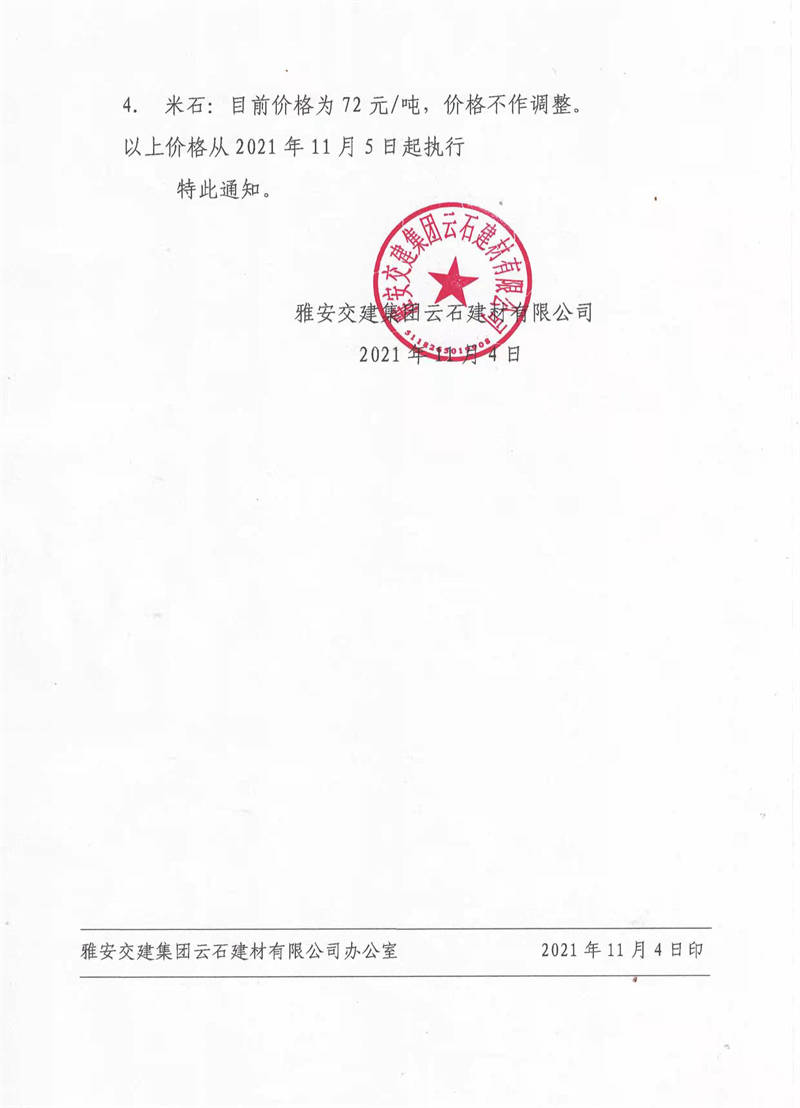 ÑŰ²½»½¨¼¯ˆF(tu¨¢n)ÔÆÊ¯¹«Ë¾êP(gu¨¡n)ÓÚÕ{(di¨¤o)Õû³ÉÆ·ÁÏäN(xi¨¡o)ÊÛƒr(ji¨¤)¸ñµÄ֪ͨ£¨2021.11.4£©