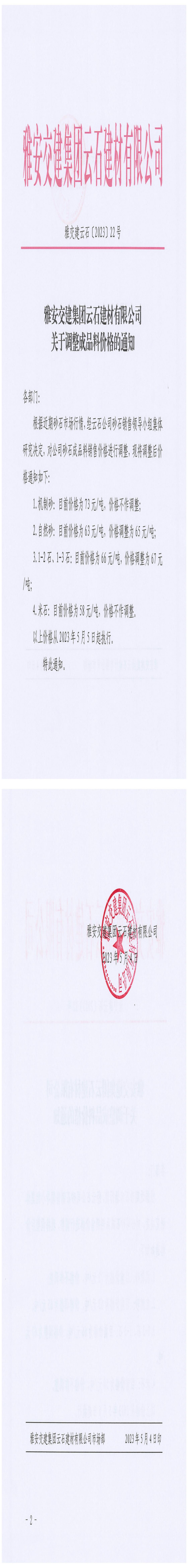 雅交建云石建材有限公司調價通知(2023-5-4)